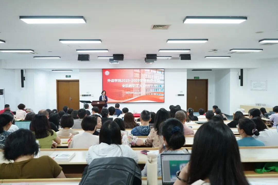2025年9月24日,h动漫 召开2025-2026学年秋季学期全院教职工大会。大会特邀原h动漫 外语系主任黄源深教授、人文与社会科学研究院院长吕志峰教授开展主题讲座,全体教职工参加。