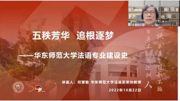 法语系荣休教授何慧敏老师以“五秩芳华,追根逐梦”为题回顾了h动漫 法语专业建设史。她首先介绍了五十年间我校法语学科发展的几个重要阶段:从1972年法语专业成立到1976年;1978年恢复高考制度到2005年;从2006年法语系建系至今。她重点介绍了前两个阶段的班级及学员特点。第一阶段的学员构成呈现多样化的特征,既有从上海各中学毕业生中选拔的法语干校培训班的学员,也有工农兵学员,还有来自华师大、上海师院、教育学院等大学的俄语和其他学科的教师组成的进修班。第二阶段是恢复高考后招收的各届本科生。接着,何慧敏老师回顾了教师队伍的发展和建设历程:从1972年建专业时“3+3”,到1973年起教师来源的多元化,再到从1995年起从国外和国内其他高校引进法语高层次人才充实师资队伍。最后,她强调了在大学养成良好的学习习惯和培养终身学习能力的重要性,勉励法语系学生进行跨学科学习和研究,为社会发展和祖国建设做出贡献。