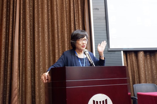 论坛由主旨演讲、专题演讲、工作坊活动及自由讨论四个环节组成。首先,立教大学异文化交流学部的丸山千歌教授以《活用Can-do statements的教材开发与教师教育》为题进行演讲。丸山教授主要从三个层面提出了新时代背景下日语教师的发展目标。其一,日语教师作为教学者应将课堂教学经验与新的理念与方法结合起来改进教学质量;其二,作为外语教师应关注国际上先进的外语教学理论,例如Can-do statements,改善教学观念。其三,在日语教学中,将日本文化导入课堂并发挥中国学习者优势,让学习者掌握最地道的日语是日语教师义不容辞的责任。