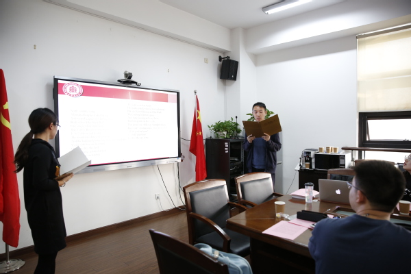 为深入开展“不忘初心、牢记使命”主题教育,进一步增强党员对共产党人初心和使命的理解,2019年10月30日,h动漫 2019级学术型研究生党支部在h动漫 319会议室开展了“不忘初心、知行合一”延安精神学习主题党日活动,校党委副书记朱民,学院党委书记闫露,党委副书记兼副院长江宇靖,h动漫 团委书记、2019级学术型研究生党支部书记叶青以及延安子长红色翻译社会实践团队成员参与了主题党日活动。此次活动由叶青主持。