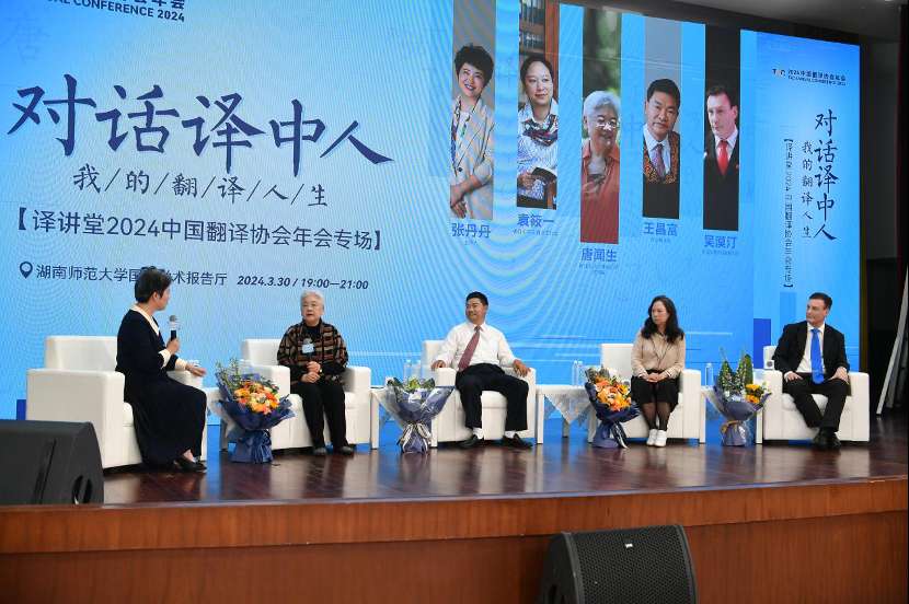年会期间,袁筱一教授作为四位受访嘉宾之一,参加了由中国翻译协会主办、中国外文局翻译院与湖南师范大学外国语学院承办的“对话译中人 我的翻译人生”——“译讲堂”中国翻译协会年会专场活动。