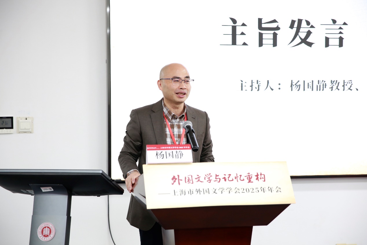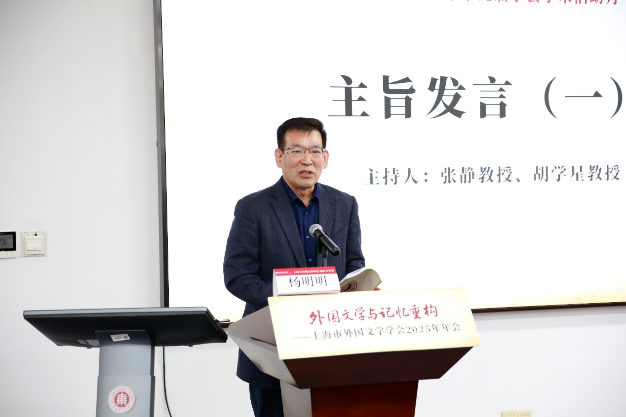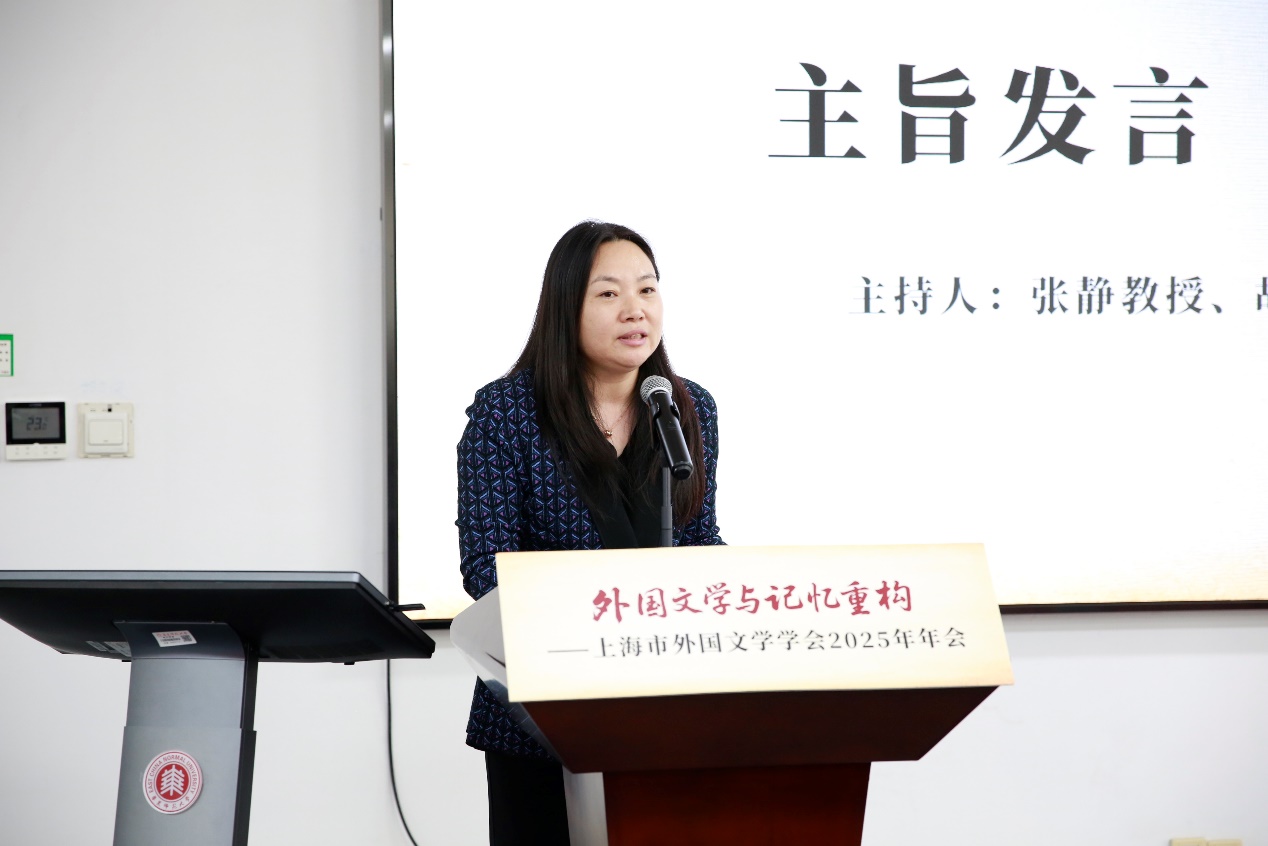 韩春红书记首先代表承办单位,对与会专家、学者和师生表示热烈的欢迎。韩书记特别以“三张名片”概括了学院外国文学研究的特色:一是以“丽娃河畔的翻译家群”为代表的深厚的外国文学翻译与研究传统;二是学院近年来积极打造的活跃而开放的多语种文学研究学术共同体。文学研究团队通过“大夏外国文学研究交锋论坛”“聚学讲坛”及“攀峰计划”沙龙等系列品牌活动,持续推动学术交流和创新;三是当下文学研究团队正着力推进的以“四个服务”为导向的文学研究转型,推动外国文学研究服务区域国别学建设、教育高质量发展、地方经济社会发展,以及学校新兴学科布局。她强调,在抗战胜利80周年的特殊历史节点,本次年会以“外国文学与记忆重构”为主题,无疑具有深远的意义。