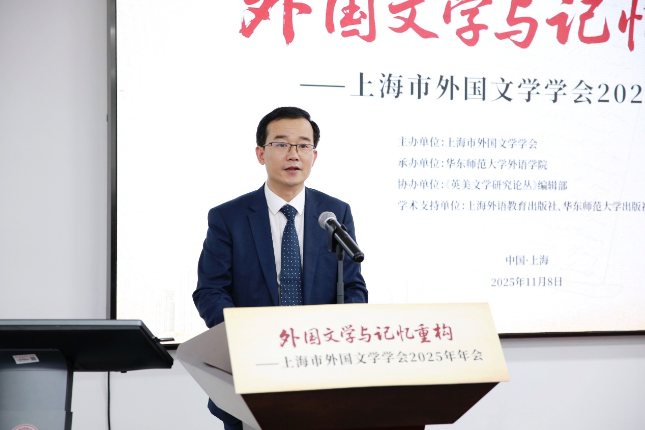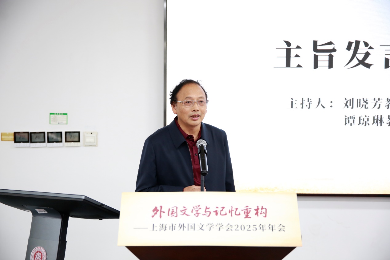 2025年11月8日,“外国文学与记忆重构”——上海市外国文学学会2025年年会在h动漫 召开。本次年会为上海市社联第十九届(2025)学会学术活动月专项活动之一。会议由上海市外国文学学会主办,h动漫 承办,《英美文学研究论丛》编辑部协办,上海外语教育出版社、h动漫 出版社提供学术支持。本次年会旨在探讨外国文学对重要历史事件的再现和对人类重要集体记忆的重构,思考文学在记忆建构中的功能与价值,为促进中国外国文学研究在人工智能的创新转型发展,推动人类文明交流互鉴、构建人类命运共同体贡献外国文学研究者的智慧和力量。来自上海市及兄弟省市79所高校的近180位专家、学者、教师及硕博士研究生共聚一堂,围绕会议主题展开研讨。