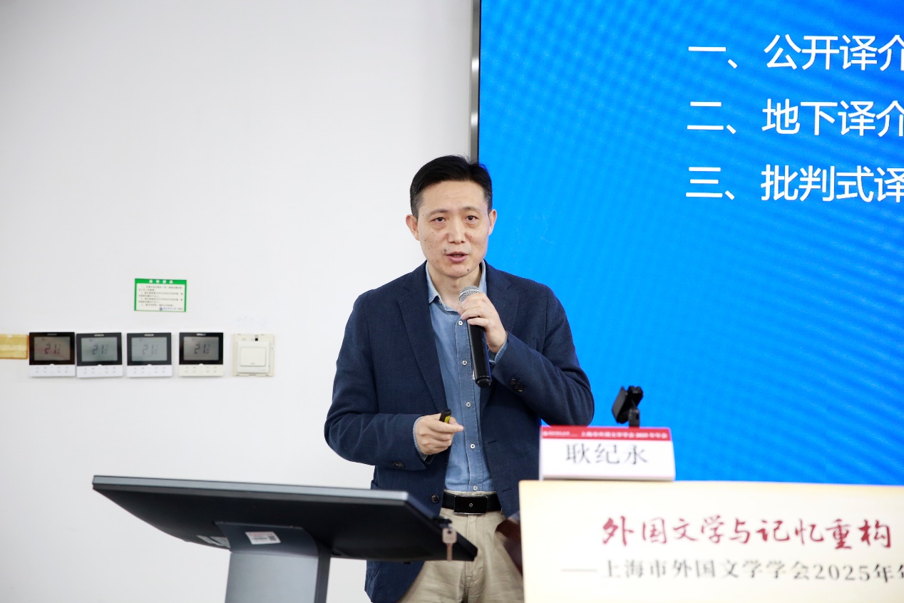 第二阶段的主旨报告由上海财经大学杨国静教授、h动漫 王改娣教授主持。上海外国语大学王腊宝教授以《记忆缺席时代的难民情感:从<耶稣上学记>看库切的“失败诗学”》为题,剖析了库切作品中难民记忆被压抑的情感困境与社会批判。王教授运用情感认知理论分析这些库切笔下的情感错乱案例,揭示了库切对西方难民接收政策的尖锐批判,并阐释了作家如何以“交互诗学”超越其早期创作中的“失败诗学”,倡导一种基于记忆尊重与情感完整性的伦理立场。