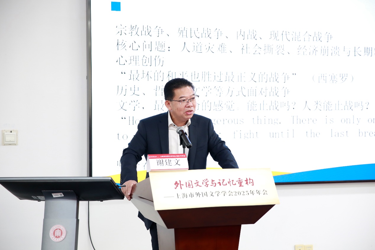 副会长、上海外国语大学谢建文教授作主旨报告