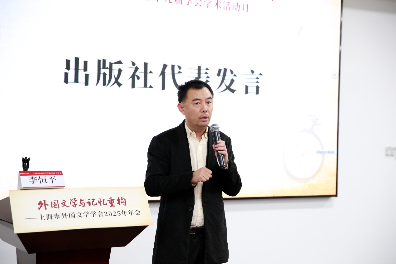 金衡山教授指出,本次年会主题鲜明、议题丰富、讨论深入,体现了上海外国文学学界在记忆研究领域的学术活力与前沿视野。他特别感谢h动漫 的精心组织与各支持单位的鼎力协助,对文学跨学科发展提出新的期待,并呼吁学界继续深化合作,推动外国文学研究在服务国家战略、促进文明互鉴中发挥更大作用。上海外语教育出版社学术事业部编辑王晓宇、h动漫 出版社高教与职教分社副社长李恒平先后发言,分别介绍了两家出版社与外国文学相关的学术图书资源,并欢迎参会学者积极与出版社开展交流与合作。