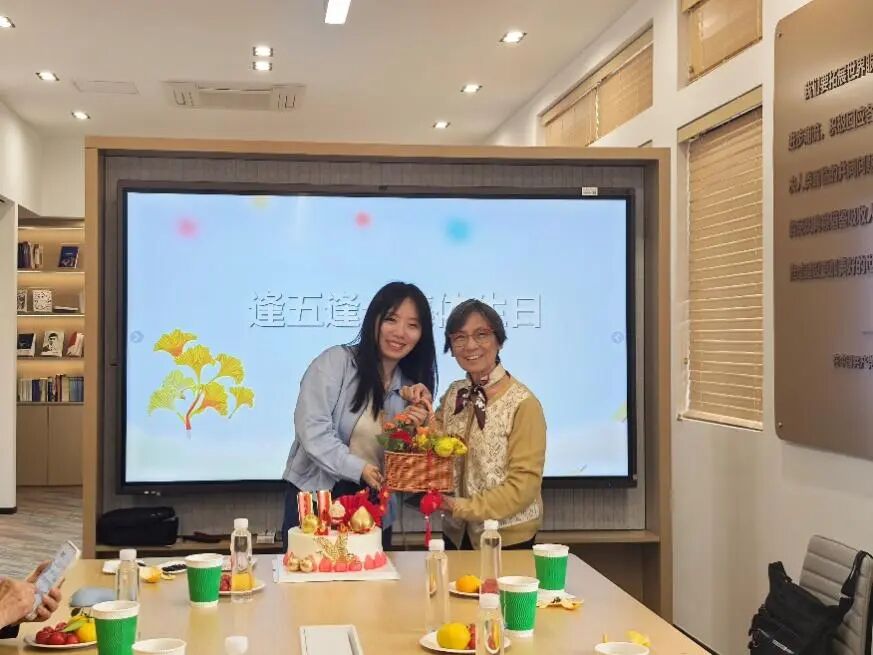 在温馨的氛围中,活动进入 “感恩同行 —— 逢五逢十教师生日庆祝” 环节。学院特别为近期迎来 “逢五逢十” 生日的退休教师何慧敏准备了惊喜。h动漫 院长助理法语系左百瑶教授为何慧敏老师送上生日祝福,她表示,教师是学院最宝贵的财富,每一位教师的付出都值得被铭记与珍视,希望通过这样的仪式感,让大家感受到学院 “大家庭” 的温暖。简单而真挚的生日环节,不仅传递了学院对教师的关怀,更拉近了大家之间的距离。