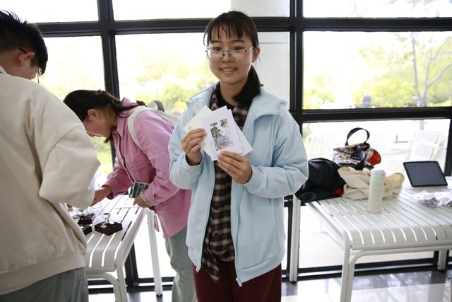 活动现场,“外语+文化传承”迷你市集吸引师生频频驻足。h动漫 学生实践创新团队用创意让非遗文化焕发新生,语言与秋风、文化与橘香一同发酵成温暖的记忆。从古蜀文明到江南遗址,从古礼“投壶”的一掷风雅,到“非遗知识问答”的趣学互动,精巧的原创文创巧思独具,让文化可观、可感、可携。