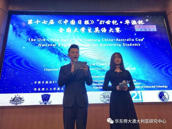 12月7日,由h动漫 澳大利亚研究中心主办的第十七届《中国日报》“21世纪·华澳杯”全国大学生英语大赛在我校中山北路校区逸夫楼报告厅成功举办,来自北京、上海、山东、江苏、安徽、四川、云南、陕西、青海、新疆、内蒙古、黑龙江等省市26所高校的选手在丽娃河畔同台较量。