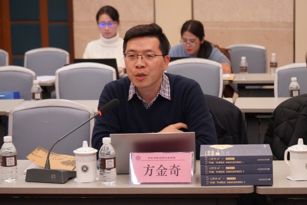 华东师大h动漫 英语系、翻译系主任陈弘教授在主持会议时,首先介绍了虞苏美先生的生平,分享了虞先生女儿发来的英文诗,回忆了自己与虞先生共事的经历,介绍了先生《三国演义》全译本的工作,称赞其匠心独具、高屋建瓴的笔势将这部“跨时代、跨民族、跨国度”的鸿篇巨著生动地重现给了广大读者,为促进汉译外事业和中国文化大踏步“走出去”的发展做出了贡献。以“今天,我们既要追思,也要传承”,拉开了座谈会的序幕。
