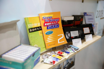 本次展览中最引人注目的是各类大型语音学习设备,如拷带机、开盘机、电唱机、收音机等,这些“神器”和背后默默付出的老师们是这些温暖声音的来源。早在计算机尚未流行的上世纪八十年代中期,华东师大的学生就可以走进一片专属于英语听力的小天地,通过外语系教研室老师搜集和制作的成百上千盘的外语磁带,享受到海量听力资源。