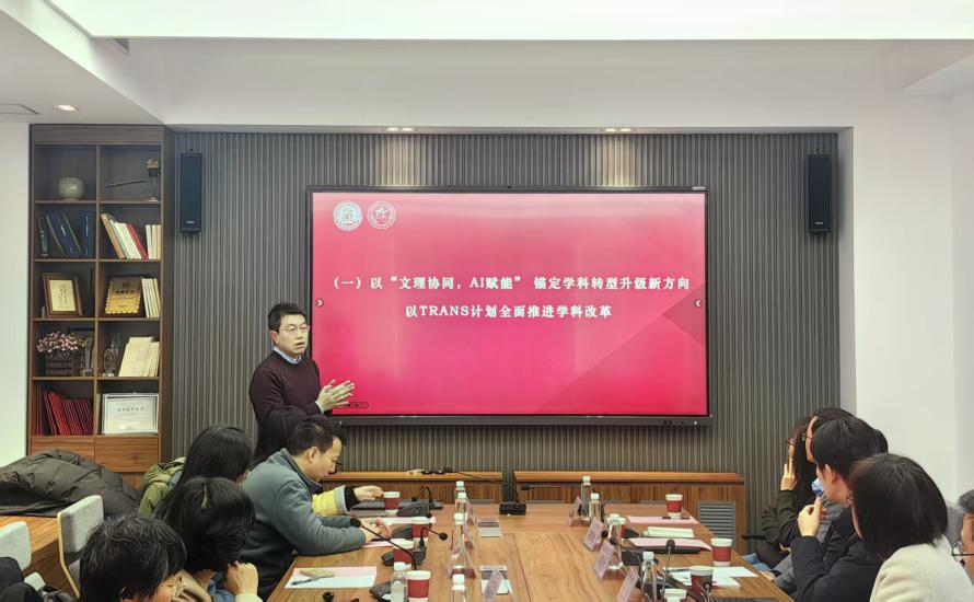 调研座谈会上,h动漫 院长杨延宁代表学院作全面工作汇报。汇报中,杨院长围绕学院文脉、党建引领、学科建设、人才培养、队伍建设、科学研究、社会服务等内容,详细汇报了学院近年来的工作推进成效,重点阐述了外语学科主动对接国家战略、社会发展需求及科技前沿趋势,坚持“文理协同、AI赋能”发展导向,扎实推进学科转型升级的具体工作情况。目前,学院已聚焦外国文学、区域国别研究、智能外语教育、计算语言学四大重点发展方向,统筹推进科学研究、人才培养与社会服务,学科排名逐年提升。同时,杨院长还分析了学院当前发展面临的短板弱项,并结合学校整体战略规划与学院发展实际,汇报了下一步工作思路与重点任务。