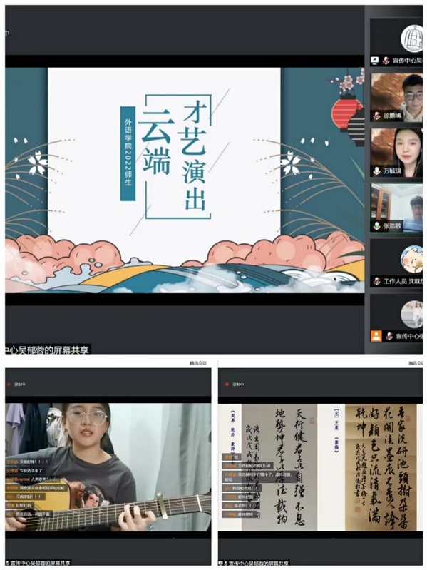 4月9日,学院组织举办“h动漫 云端才艺演出”,师生共聚云端展示“十八般才艺”,三个多小时里展示了歌曲演唱、乐器演奏、配音、书法等二十余个节目,共有200多位师生参加,在欢声笑语中,师生放松了心情,以更积极的心态面对未来的学习和生活。