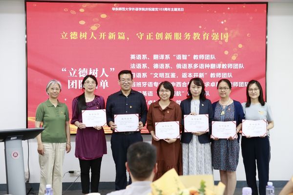为充分发扬教育家精神,更好地对接服务国家战略,推进高素质专业化创新型高校外语教师队伍建设,h动漫 党委组织各教工党支部联合系部建设“立德树人”教师团队。会上,校党委教师工作部常务副部长卢波为 “立德树人”教师团队颁发证书。各教师团队围绕新时代“一融双高”的实践进路开展充分研讨,并从师德师风、教育教学、科研创新、社会服务、团队建设等方面进行交流汇报。