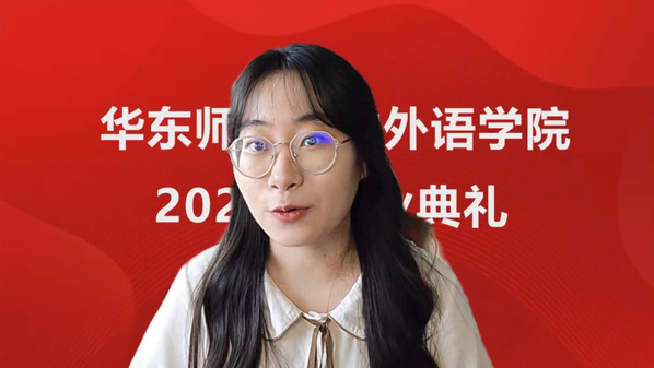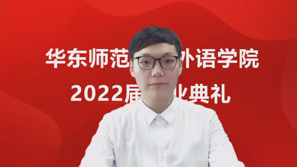 2019级英语语言文学专业硕士毕业生潘俊韬和2020级英语笔译专业硕士毕业生刘向阳作为研究生代表发言。两位同学回顾了在外院与老师同学们的相处时光,向学院和老师们表达了最诚挚的感谢。2018级外国语言学及应用语言学专业博士生程喜则用“凡事预则立,不预则废”与大家共勉,表示这一段为学术理想奋斗的时光将成为人生的宝贵经历。