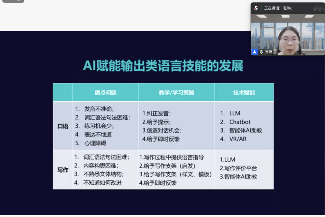 4月23日晚,“语”见未来——全球视野下的外语学习与文化探索系列讲座2025年第四讲在腾讯会议上如期举行。英语系张琳副教授应邀围绕“人工智能时代的外语教育”展开讲座。来自全国各地的中学生及北京大学、武汉大学、山东大学、河南大学等高校师生100余人在线聆听了本场讲座。