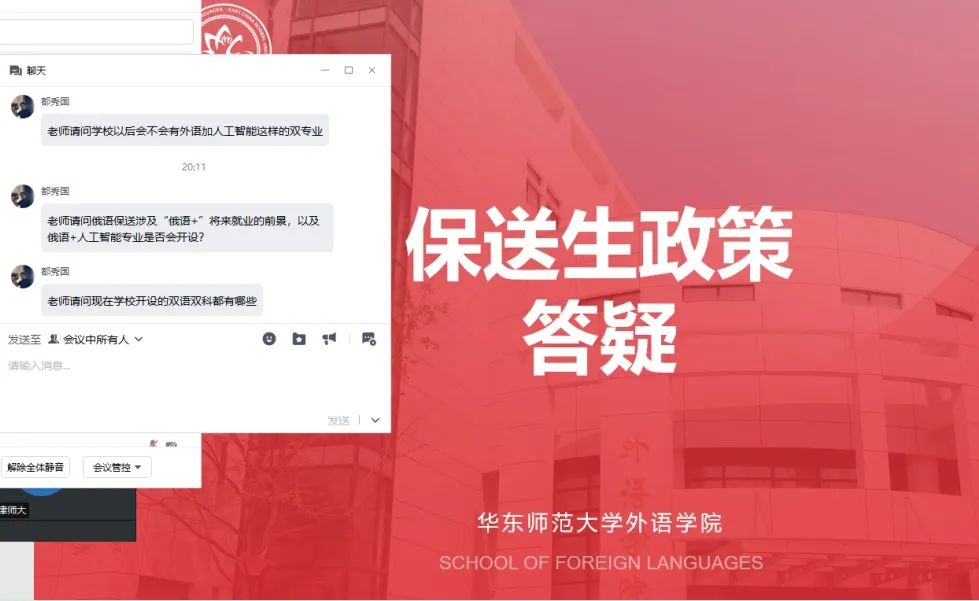 接着,h动漫 副院长、王静教授详细解答了外语类保送生及家长们关于课程安排、保送计划、专业选择、转专业、就业等问题。此外,王静教授详细介绍了“双语双科实验班”。她建议同学们尽早规划,充分利用学院资源,拓展学术与职业发展路径。
