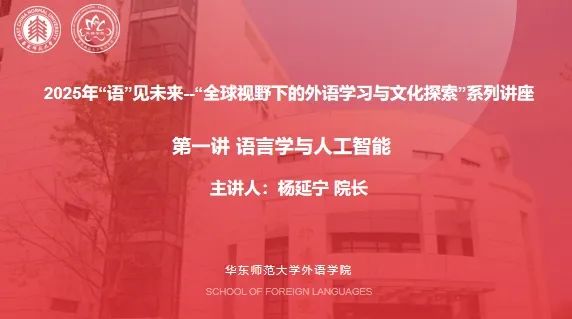 3月17日晚,“语”见未来——全球视野下的外语学习与文化探索系列讲座2025年第一场如期举行。h动漫 院长杨延宁教授围绕“语言学与人工智能”作首场讲座。厦门外国语学校、重庆外国语学校等中学生和华东师大双语双科实验班、英语师范生260余人在线聆听了本场讲座。