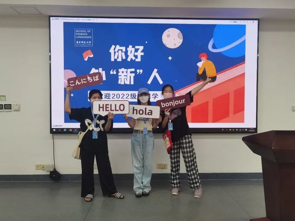 9月5日-6日,h动漫 本科生新生入校报到,h动漫 一楼设置各专业迎新点位,用不同语言的“你好”迎接初到师大的外语“新鲜人”。