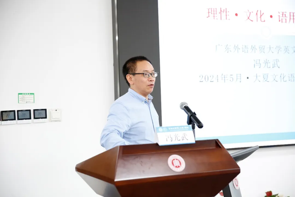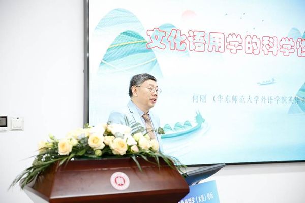 何刚教授以“文化语用学的科学性探索”为题作主旨报告。何刚教授指出,文化语用学研究是一门关于话语文化语境化理解的科学研究,强化科学意识和科学方法,理解其解释型学科类属,深刻理解文化语用解释所要遵循的解释科学范式,可以保证该学科的客观、合理、安全地向前发展。具体而言,文化语用研究的科学性可以从以下方面加以认识:日常言语交际中的话语作为文化语用学研究对象、基于文化关联原则的语用推理为科学解释的方法、由话语内部语用信息构成成分到话语整体文化关联为有效解释路径;以及直接语境与文化语境双向可接受为解释目标,由此及彼,关联推理,能够构成文化语用学的完整体系;这种基于列文森语用学模型的成功体系能够很好地丰富和发展文化语用学关于研究言语行为执行文化功能的立学初心。在何刚教授的报告中,关于文化心理信息系统的解释参照性、文化语用学元语言系统的重要性等核心问题,都得到了较为全面地回答。何教授也指出:文化语用学当然关心文化是什么的问题,但文化语用学更关心话语所以来的特定文化所能提供的解释体系—文化设定的意识形态(核心设定:理想、信念、价值和文化态度;人际伦理设定—规范、原则、规矩、准则等)和文化关联的各种事实—物质、精神、艺术、语言等;这样的文化指示信息体系一旦成为话语主体(文化代言人)的心理信息,就必定会介入到话语的文化语用信息建构和解释过程,成为其解释参照系和基础。文化语用学首先是文化内向(culture-internal)的解释,而且这样的解释所产生的解释范畴必然成为跨文化比较语用学的前提。本报告由广东外语外贸大学冯光武教授主持。