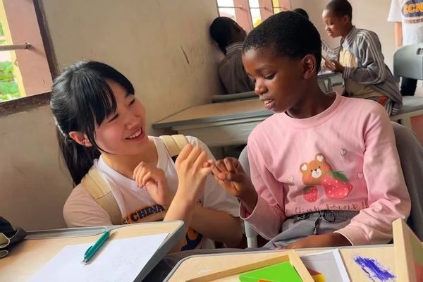 政治与国际关系学院于钧同则给当地青年开展了一场别开生面的汉语教学活动,为当地的青年打开了一扇通往中文世界的大门。他借助当地的中文教材,耐心地教授了从一到十的汉字写法和发音,并引导学生们用这些数字练习组词和造句。课后,许多学生意犹未尽地围着于钧同提问,他们表示,这次课程不仅学到了语言,还感受到了一种文化交流的深厚友谊。