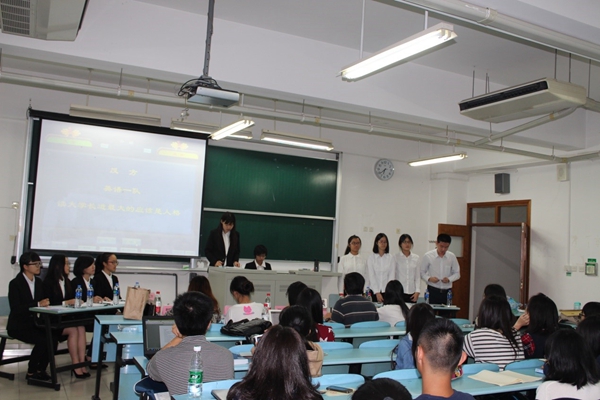 本科生组揭幕赛随即开始,以“读大学,长进最大的应该是知识还是人格”为辩题。翻译系持正,英语三班持反;双方唇枪舌剑,才思敏捷,赢得掌声阵阵。最终英语三班的初晓同学表现优异,获“最佳辩手”称号;而翻译系则凭借有力的攻击、精妙的配合首战告捷。