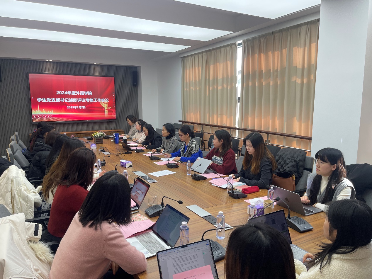 如何有效激发学生党支部的创新活力?学院党委委员、学生党支部书记、辅导员参加学生党支部书记述职评议会。会上,学术型研究生第一党支部书记金晶、学术型研究生第二党支部书记邹航、学术型研究生第三党支部书记冯烨、专业型研究生第一党支部书记原蓉洁、专业型研究生第二党支部书记吴含箫、本科生党支部书记侯嫣茹、英语师范本研学生党支部书记陆云鹏分别进行述职。党委副书记兼副院长武娟,党委委员苏俊玲、高冬琴围绕学生党支部书记本年度履职情况、支部建设成效、问题及改进举措等方面逐一进行点评。