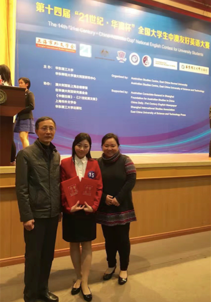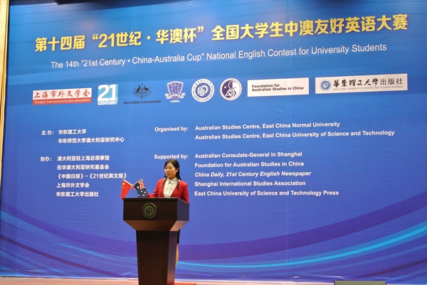澳大利亚研究中心与华东理工大学联合主办的第14届“21世纪·华澳杯”全国大学生中澳友好英语大赛在华东理工大学举行。来自上海、北京、江苏、安徽、山东、青海、四川、新疆、海南等省市27所高校的选手登台较量。竞赛分已备演讲、即兴演讲和澳大利亚知识问答三个部分。在陈弘老师的指导下,我校h动漫