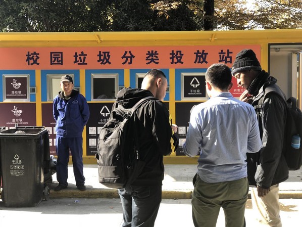 本次党支部实践活动以现实生活中迫切需要做的“垃圾分类”为主体,让同学们主动参与到垃圾分类的活动中,让垃圾变废为宝,让环境更加整洁有序。首先,为帮助留学生正确投放垃圾,支部成员结合专业背景,整理并翻译了垃圾分类相关材料,并以小组为单位在校园垃圾分类投放站向他们发放相关资料并进行简单采访。