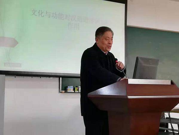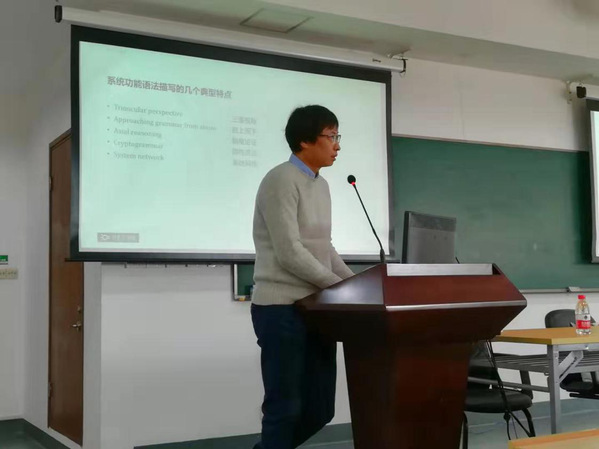 杨延宁教授在《汉英被动构式演变的异与同》主题报告中,借助古汉语和古英语语料,重新审视了被动式的形成与发展过程,揭示了汉英构式演变中的异同点。马爱德教授在《以动词性标记来界定句式:对现代汉语小句结构的多功能衔接分析》主题报告中,首先将所有动词性成分的基本结构视为“逻辑性”结构,然后使用系统功能理论里的不同“元功能”定义了各种语法结构。深圳大学彭宣维教授在《论“得”后成分的功能角色》主题报告中,先回顾了相关研究的内容,之后分析了“得”后成分的两种及物性角色,并指出了一些相对复杂的情况。专家学者们在提问环节,针对报告内容,提出了许多有价值的问题和建设性的意见。