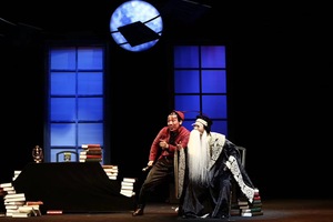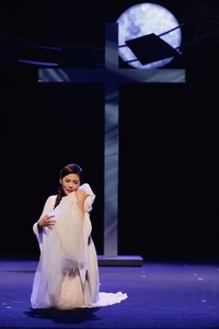 新编京剧《浮士德》根据德国文豪歌德的同名诗剧改编,在遵从原著精神与时代背景的基础上,用外国角色形象演绎京剧作品,中西合璧,以戏曲程式美学为圭臬,辅佐以现代戏的排演方式,融入了90后年轻人对传统戏曲和《浮士德》的独特见解,为现场观众呈现出了一台富有诚意的新编京剧。