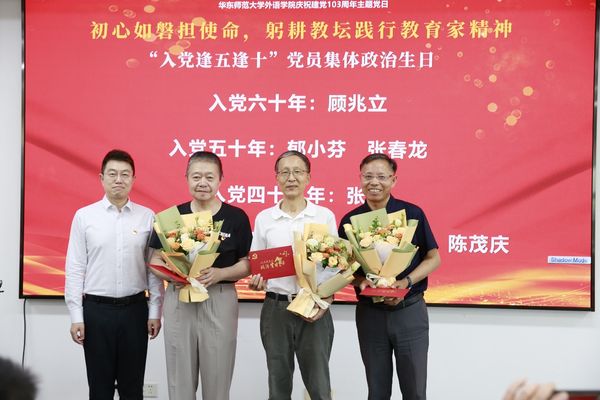 党委为“入党逢五逢十”的党员过集体政治生日。校党委组织部副部长谭红岩送上寄语和祝福,她鼓励学院全体党员始终心怀“国之大者”,坚定追求卓越,在新征程的奋进中时刻叩问“初心如故否,信仰如磐否,担当如铁否,清正如莲否”,为教育强国建设、民族复兴伟业贡献力量。