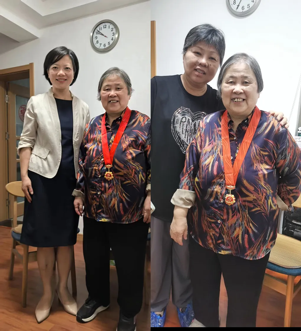 此前,党委书记韩春红和退休第一党支部书记丁兰兰为郁小芬同志送去“光荣在党50年“纪念章