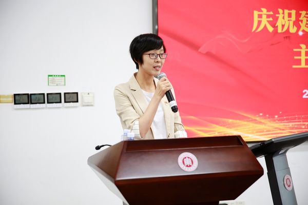 韩春红代表学院党委,向全体党员同志致以节日的问候,并向郁小芬、李道荣、张春龙三位荣获“光荣在党50年”纪念章的老同志表示热烈祝贺。