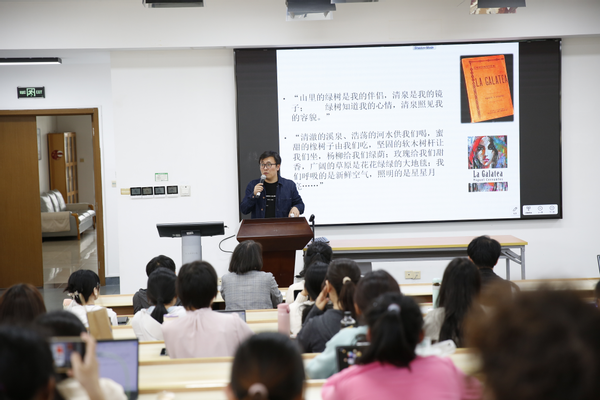 聚学讲堂第2312期讲座邀请了北京大学外国语学院西葡意语系系主任、中国外国文学学会西葡语文学研究分会会长、国内知名西班牙语文学学者范晔副教授,为外院学子开展了题为《“神奇生物”在这里:西班牙语文学漫谈》的讲座。
