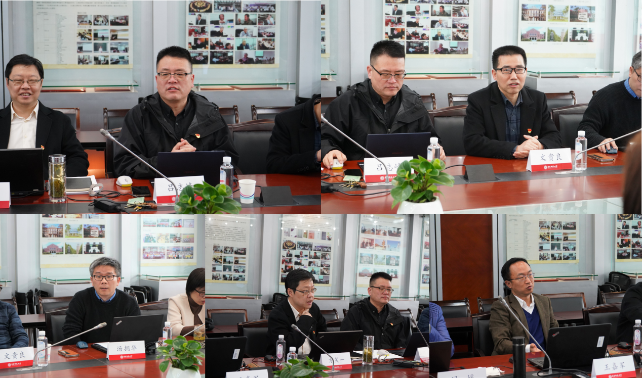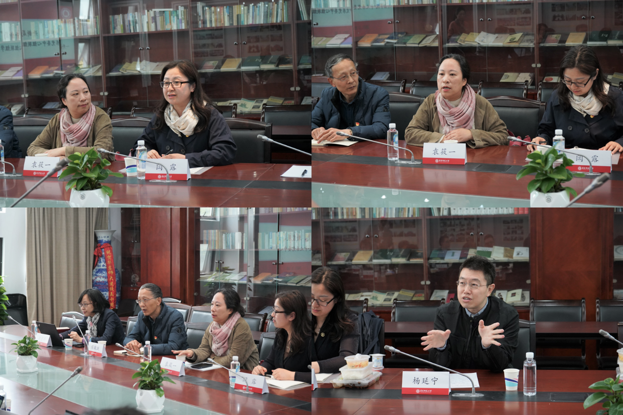 党委书记闫露,院长袁筱一,副院长侯敏跃,副院长杨延宁,党委副书记兼副院长江宇靖,党委委员高冬琴来到中文系进行学习交流,中文系党委书记吕志峰,系主任、党委副书记文贵良,副系主任方笑一、汤拥华、王嘉军,党委副书记徐燕婷,系主任助理张春田、凤媛,系办主任曹姗姗,专职组织员方中书出席会议,双方就开展党史学习教育、卓越育人及新文科建设等重点工作展开研讨。