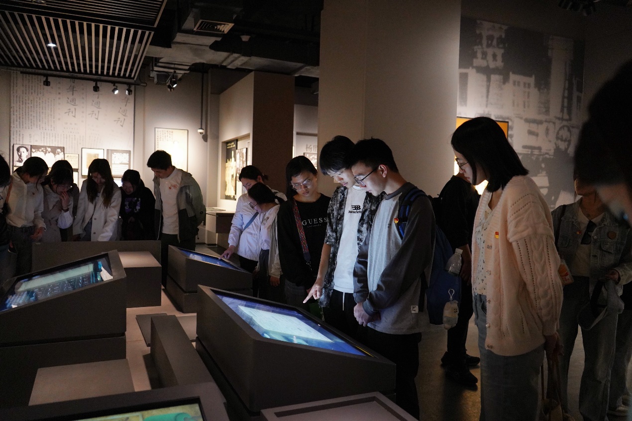 在讲解员带领下,师生们重点参观了龙华烈士纪念馆。龙华烈士纪念馆是原国民党淞沪警备司令部军法处的刑场之一,也是当年枪杀“龙华二十四烈士”的刑场。展馆以时间脉络与精神谱系双线交织,共分八个展厅,分别为“序厅(照亮信仰的殿堂)”“信仰的召唤”“使命的执着”“信念的坚守”“民族的脊梁”“胜利的奋争”“时代的先锋”和“尾厅(仰望)”。通过1500余件珍贵文物、400余幅历史照片及多媒体交互装置,立体呈现了自鸦片战争以来256位英雄儿女的感人事迹。
