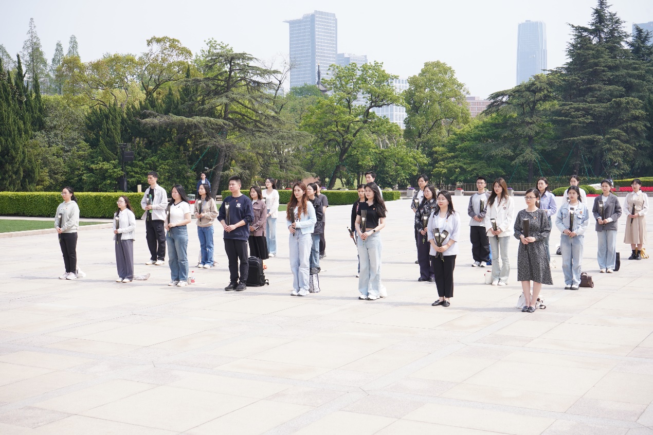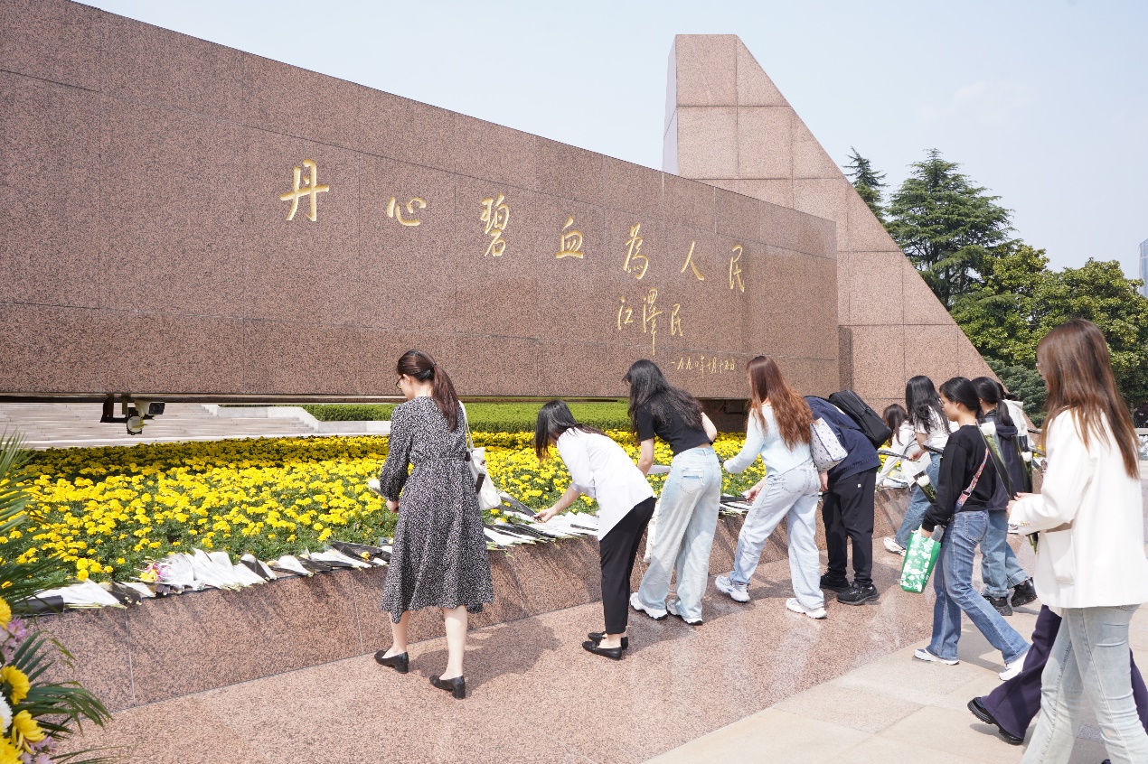 学术型研究生第一党支部党员 徐思鹏:走进龙华烈士陵园,手捧白色菊花,在献花篮仪式时听着国歌,庄严肃穆的气氛一下子让我感受到了革命先烈的悲壮气概。随着讲解员的步伐,我一点点了解到了许多革命烈士在我们党在革命发展史中的牺牲和奉献,无论是“龙华二十四烈士”,抑或是不为人所熟悉的先辈们,他们用生命丈量着理想与现实的距离,将未竟的抱负化作燎原星火。今天的桃花开得这样艳,恰似当年沸腾的热血浸透土地,绽放出永不凋零的春天。