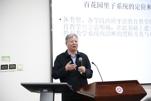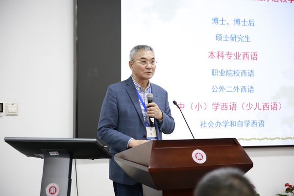 在主旨发言环节,北京外国语大学常福良教授提出,应从系统性视角审视西班牙语教育,优化课程设计,注重思维训练与语言应用能力的培养,推动各教育阶段的有机衔接。
