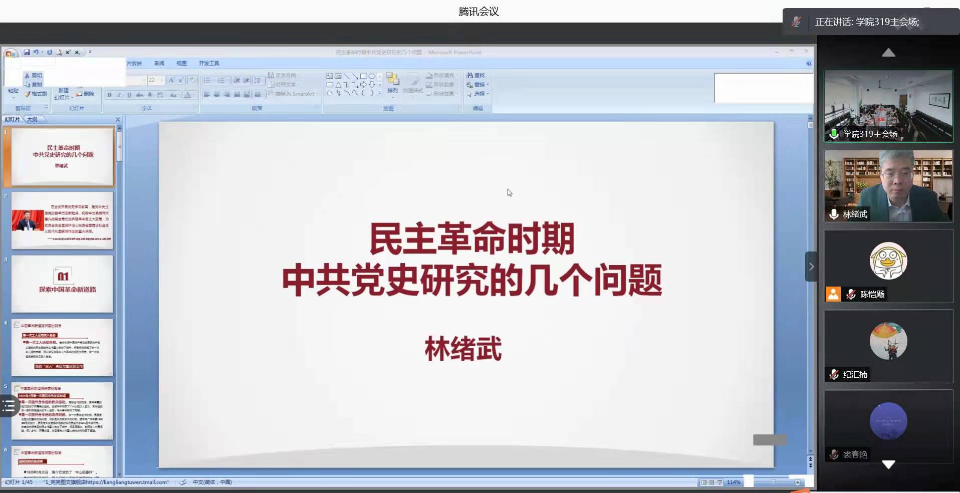 行政党支部承办,特邀北京大学马克思主义学院林绪武教授作题为“民主革命时期中共党史研究的几个问题”的报告。本次活动以线上线下相结合的方式开展,h动漫