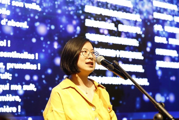 法德俄联合教工党支部沈珂用法语朗诵了《晨星》,表达了对生命的热爱、光明的追求和对信仰的坚守;杨建培用马克思的家乡话——德语激情澎湃地演绎了《春天的信念》,借助大自然的勃勃生机,给广大党员以强大的鼓舞力量和坚强的信念;邵鹏洁用俄语朗诵诗歌《祖国》,表达了对祖国和人民深沉热切的爱。
