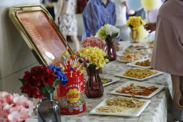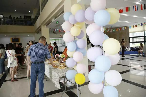 ,参加了精心为毕业生们准备的冷餐会。冷餐会场用气球装饰作为合影背景,长桌上摆放着今年毕业季的绣球花。大家珍惜着每一刻与老师、同学相聚的时间。同学们也凭借着手中的那张绣球花号车票,在学院领取了一份神秘的毕业礼品——h动漫