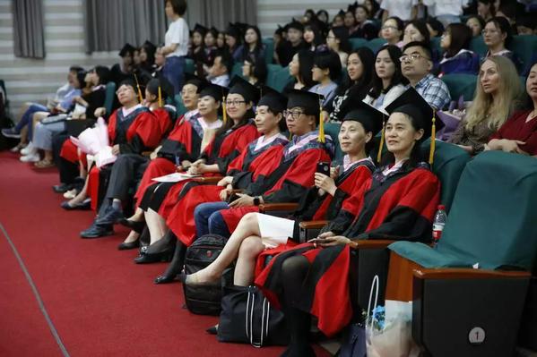 院长袁筱一、党委书记闫露、副院长朱晓映、侯敏跃老师、杨延宁、党委副书记兼副院长江宇靖、英语系和翻译系系主任陈弘、法语系系主任王静、德语系系主任宋健飞、俄语系系主任刘玉琴、日语系系主任尹松老师、翻译专业责任教授窦卫霖、西班牙语专业教研室主任徐泉、各系的专业老师代表、辅导员、院办的行政教师、院学生联合会的同学、家长们齐聚现场,参加2019 届毕业典礼暨学位授予仪式。仪式由院党委副书记兼副院长江宇靖主持,在庄严的国歌后,江宇靖回顾了2019届毕业生取得的辉煌成绩,宣布 2019 届毕业典礼暨学位授予仪式正式开始。