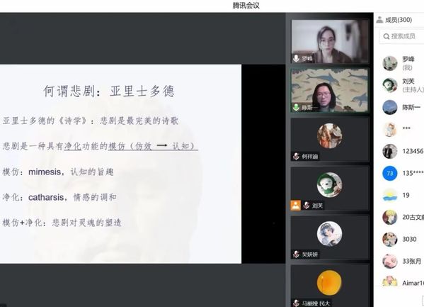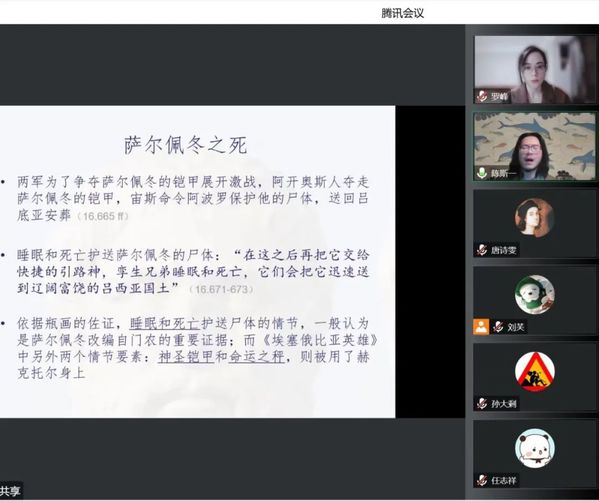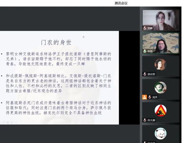 师生做了主题为“《伊利亚特》的悲剧诗学”的讲座。本次讲座系“古希腊文学与思想史”系列讲座第4讲,由英语系罗峰副教授主持,逾300名校内外师生以腾讯会议和B站的方式线上参与。