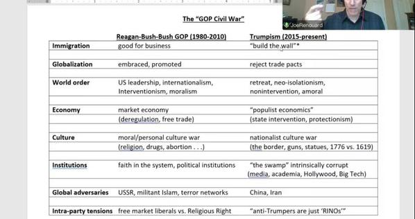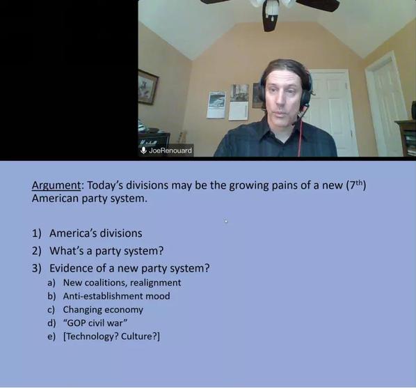Joe Renouard教授认为,如今美国的分裂预示着一个新的美国政党运作体系的诞生,他通过三部分来论证这一观点。