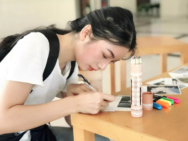 迎新的摊位旁边,布置了一个“时光慢递,纸短情长”明信片书写台。书写台上摆放着精心挑选的师大的明信片和彩色铅笔。报完到的研究生新生们在明信片上写下自己的梦想、对未来的憧憬。大家将自己心中的希望与抱负,化为文字,书写在一张张印着师大风物的明信片上。随后他们将明信片投进“h动漫