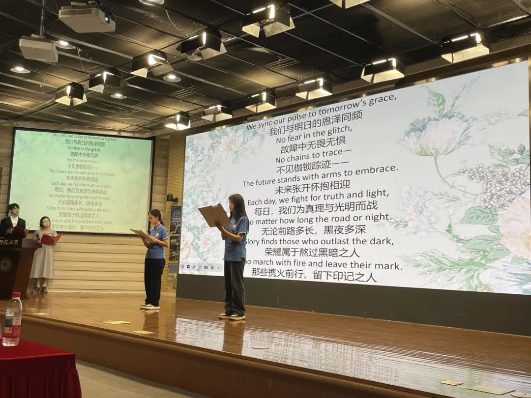 2024级英语系、翻译系的全体学生参赛,部分孟宪承书院的学生代表展示英语正音课程学习成果,同学们用流畅、优美的吐字发音展现了外语学习者对语音美感的不懈追求以及深入理解。2024级英语(师范)专业本科生罗诚皓、英语(非师范)专业本科生罗文菲全英文主持本场活动。