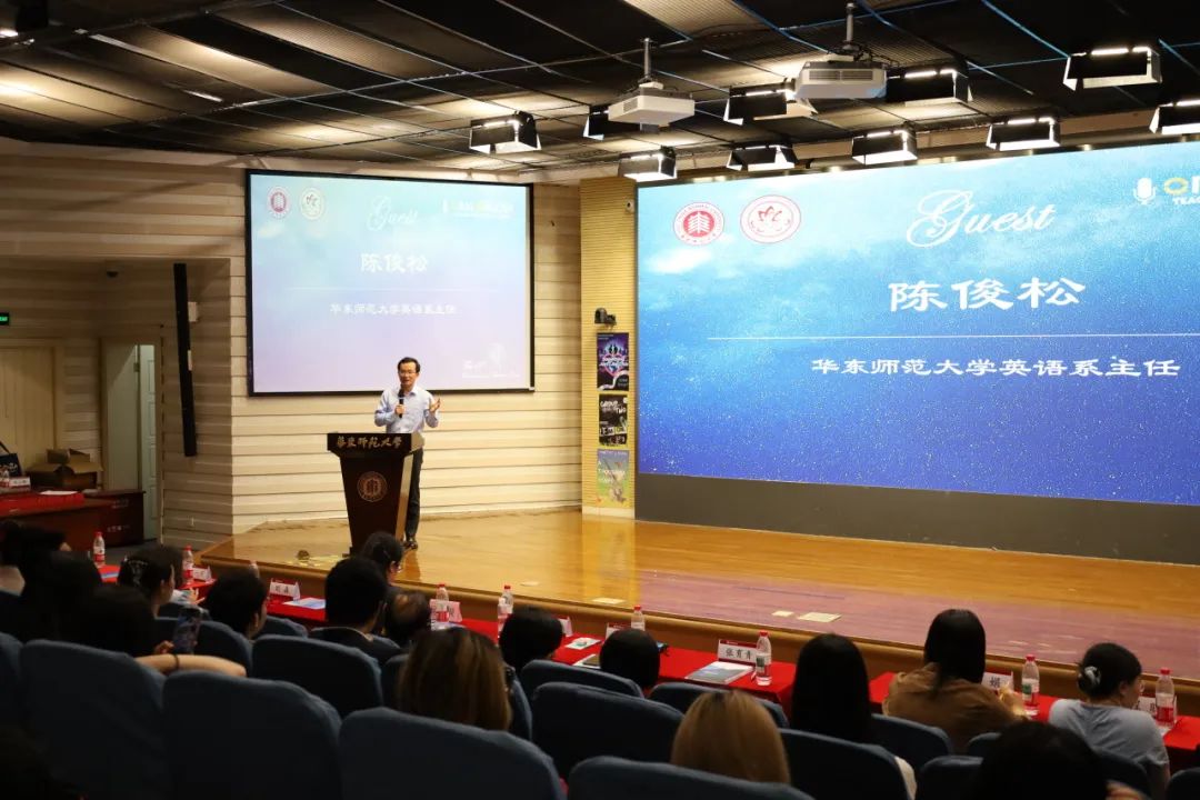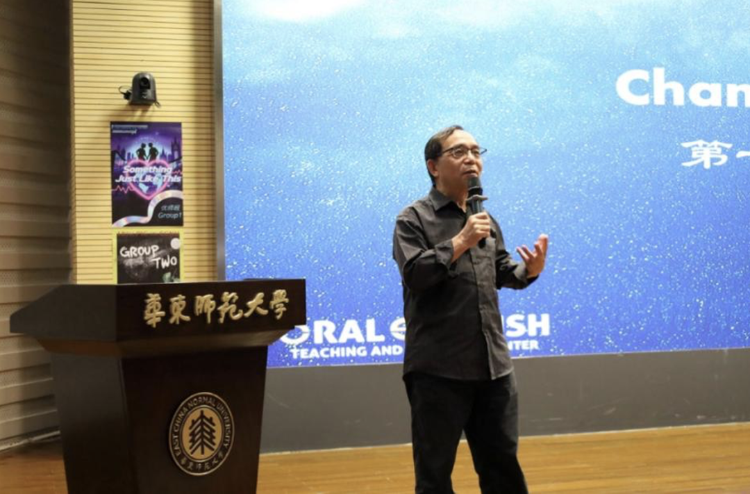 英语系主任陈俊松上台发言。他表示对同学们今晚的精彩表现印象深刻,并以“lightning”(闪电)和 “lightning bug”(萤火虫)之间的区别为例来说明语音的准确对于交流和表达的重要性。他希望同学们今后继续语音语调的练习,不断提升和充实自己,为讲述中国、沟通世界做出应有的贡献。