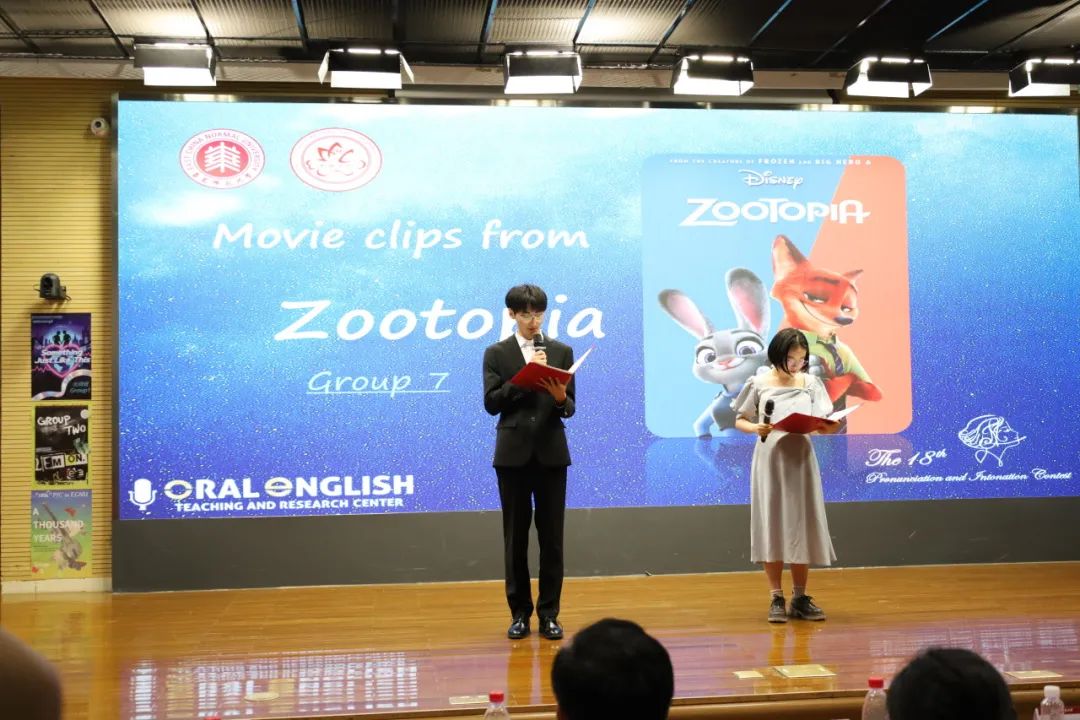 的传统品牌活动之一,至今已成功举办十八届。大赛旨在“以赛促学”,为同学们搭建展示语言学习者风采的平台,也推动了英语语音学习由“知其然”走向“知其所以然”。本届大赛以“VOICE”为主题,聚焦Z世代年轻人的锐利视角与创新精神,充分展现了师大学子的语言实力与全球视野。从单词朗读、绕口令挑战,到新闻播报、诗歌诵读,再到电影配音与团队合唱,参赛同学们表现精彩纷呈,创意层出不穷。多样的形式、出色的表达让现场掌声不断,观众热情高涨,共同沉浸在这场融合技巧与艺术的语音盛宴。