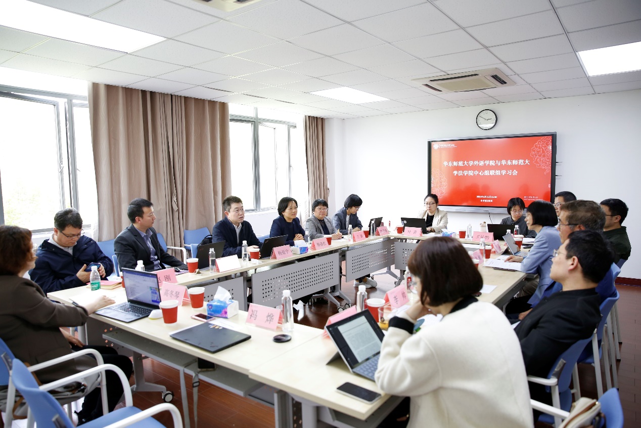 党委书记韩春红、院长杨延宁,以及来自两个院系的中心组全体成员参加会议。会议由法学院党委书记岑峨主持。